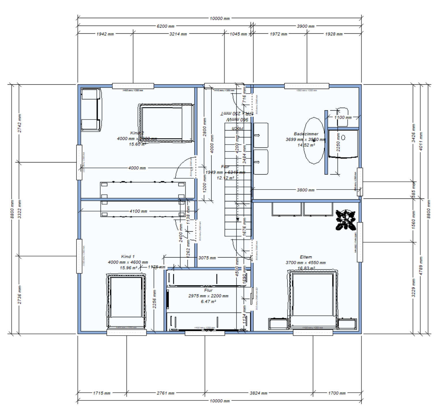 Wichtig ist natürlich auch , dass die Fenster symmetrisch angeordnet werden.