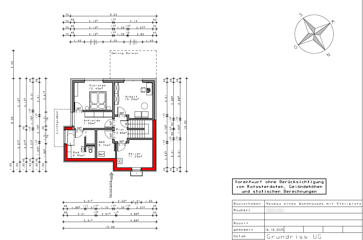 Der Architekt hat den Entwurf aus Basis folgender Eckpunkte gemacht: