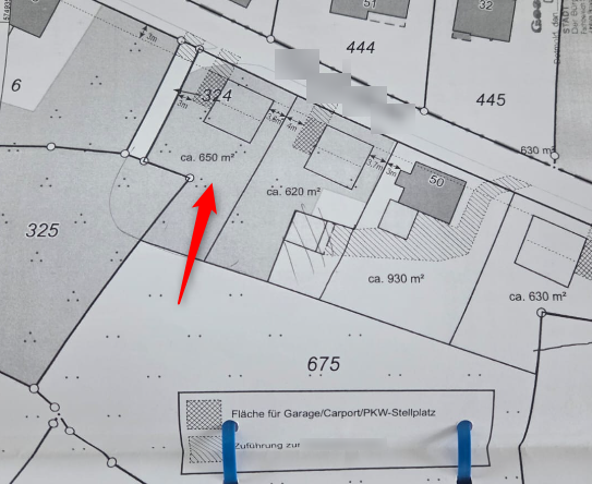 Das Grundstück ist noch nicht 100% vermessen, daher die ca.-Angabe von 650-700m².