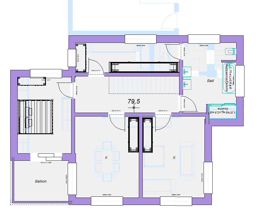 Ja da hast du Recht. Mit dem derzeitigen Stand würde die Wand an der Treppe tatsächlich die Sicht versperren, d.h. die Türen wären obsolet.