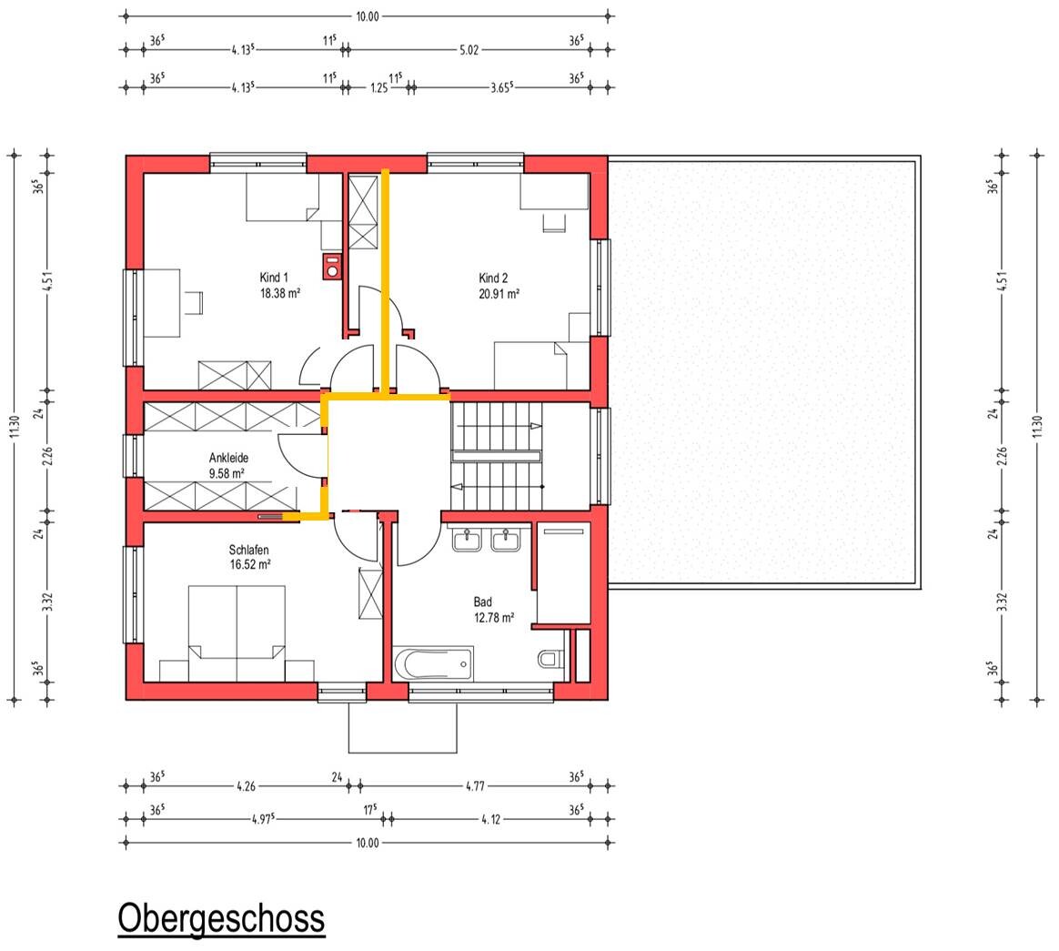 Ist der direkte Zugang der Ankleide vom Schlafzimmer für euch wichtig? Sonst hätte ich eine Idee mit einem Zugang vom Flur, und dann Kinderzimmer ohne diese komischen Ecken.