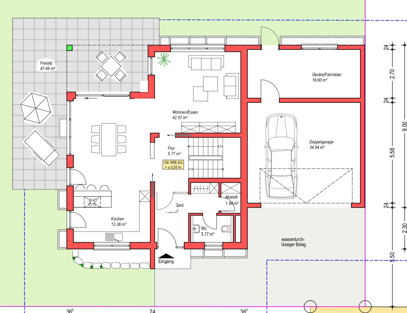 Was mir nicht so ganz einleutet ist die Trennwand in der Garage. Wozu soll die gut sein?