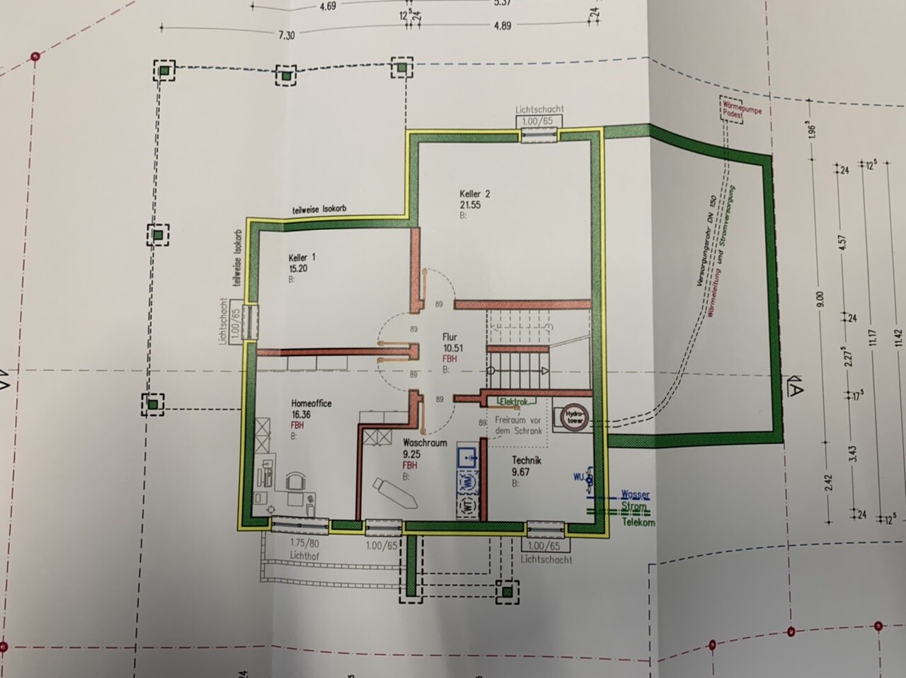 Ich würde den Lichtschacht des Kellers an der Terrasse noch streichen. Ein Keller kommt auch ohne Licht aus und die Terrasse wird nicht von einem häßlichen Gitter unterbrochen.