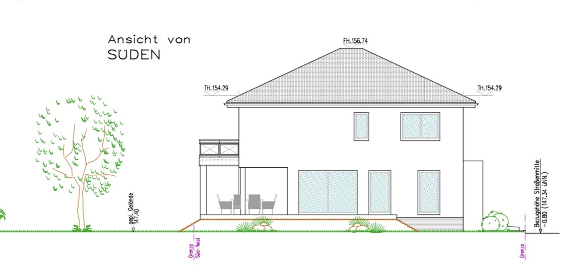 Haben heute früh die Ansichten bekommen, ist aus unserer Sicht noch nicht optimal.. vor allem stört meine bessere Hälfte die Terrassenüberdachung (3 Pfosten, siehe Ansicht Süden), wenn wir die Überdachung aber nur auf die Einbuchtung der Decke aus dem 1. OG beschränken wäre uns das zu wenig überdachte Terrasse. Fragen uns ob wir im Kinderzimmer 1 (Ansicht Süden) und 2 (Ansicht Norden) noch je ein Fenster hinzufügen sollten (einmal südlich Richtung Terrasse und einmal nördlich Richtung Garage).