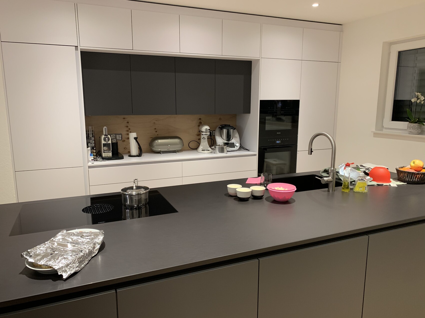 Stellst du ein paar Küchenbilder ein?Die Front der Nische wird noch eingebaut (satiniertes Glas)