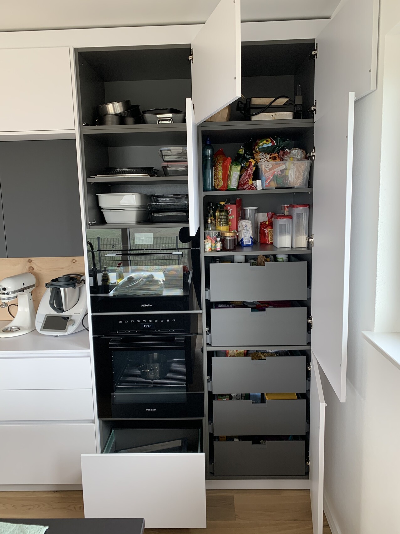 Danke für den Einblick in die Küchenschränke! Die Löcher (Steckdosen und Bora) würden mich kirre machen. Auch wenn das "heute so gemacht wird" 😎