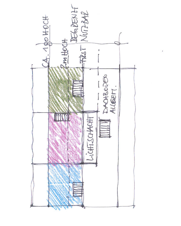 Dank auch einiger Tipps von euch, ist dies jetzt unser finaler Entwurf. Die Skizze zeigt eine Möglichkeit für den Dachboden, so dass wir sowohl Stellfläche, als auch eine Fläche für die Kinder bekommen. Der Lichtschacht würde auch eingeplant, Fenster lassen sich natürlich nur mit einer großen Leiter putzen, aber das wird schon. Als Klinker haben wir uns für den Deppe DF 1622ek entschieden.