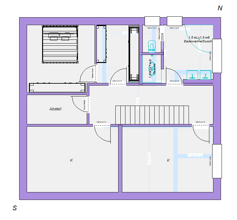 Wir planen auch ca. 1m Breite und 1,2m Länge, Schiebetür zwischen einem Schrank und eben der Toilette.