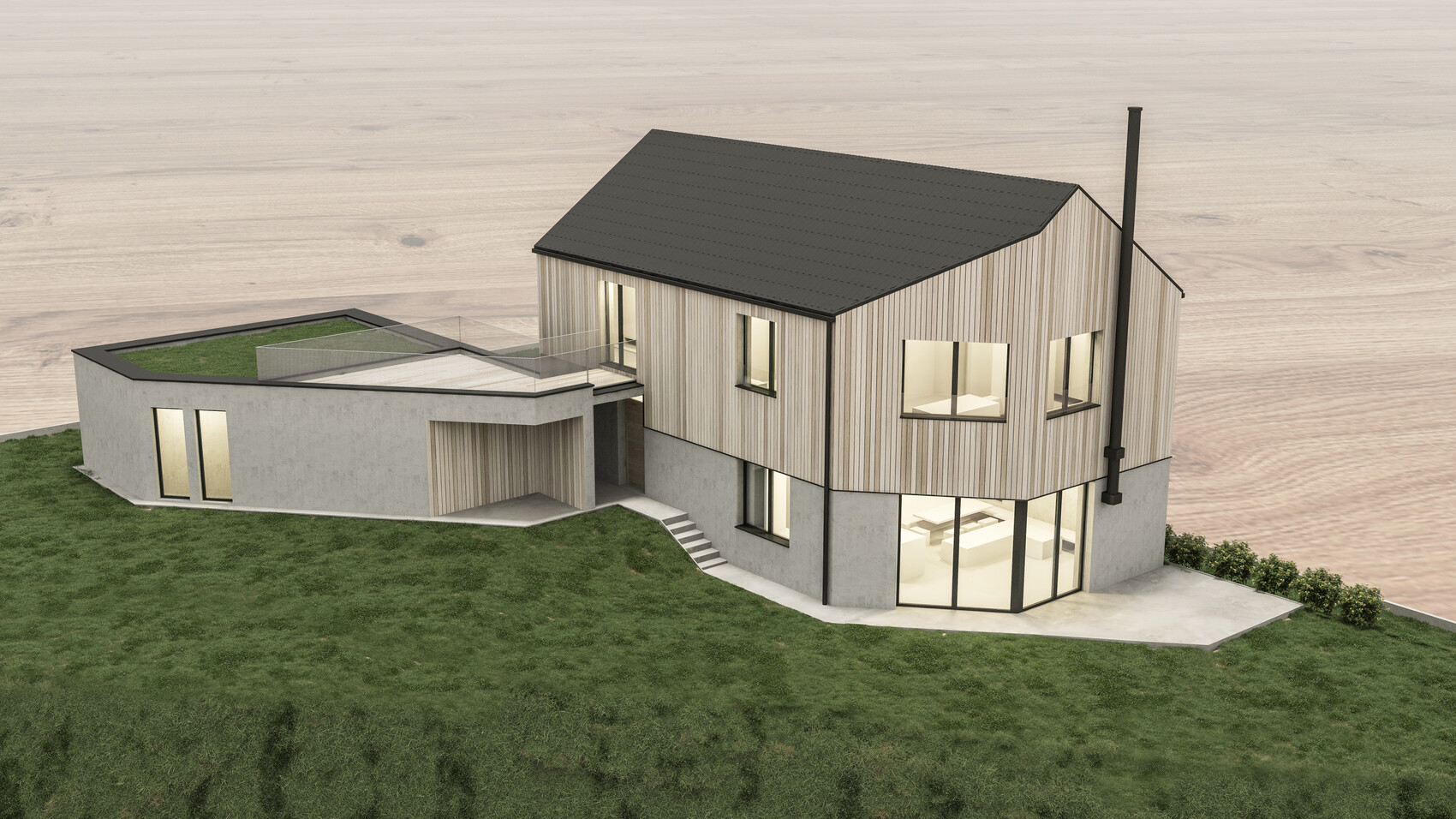 konservativ oder moderne Bauweise modern, Sichtbeton sowie Industrieboden geplant