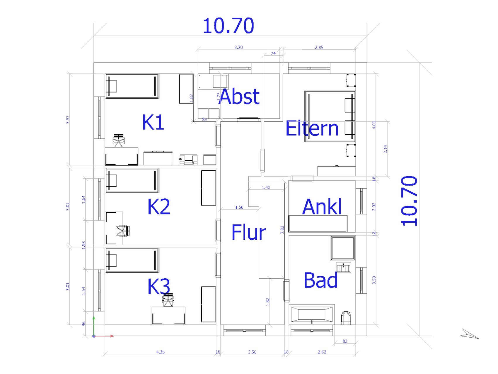 Gedanklich hängen wir noch an der der Anordnung der Wohn-und Ess- und oben Eltern-Ankleide-Abstellräume.