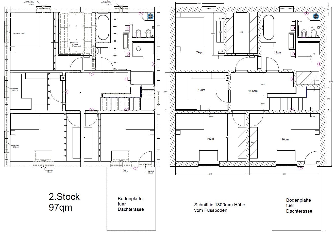 Wie schon richtig erwähnt, ist Dein Entwurf ein netter Zeitvertreib (ohne auf die Raumaufteilung selbst einzugehen); mehr nicht. Denn es ist keinesfalls sicher, daß Du einen solch hohen Drempel, noch die eigentliche Grundfläche auf jedem angebotenen Grundstück verbauen darfst. Jede Stadt/Kommune/Gemeinde hat ihre eigenen Vorstellungen zum Baufenster, Bebauungsplan und textl. Festsetzungen; manchmal gibt es sogar eine Gestaltungssatzung, welche über dem Bebauungsplan steht