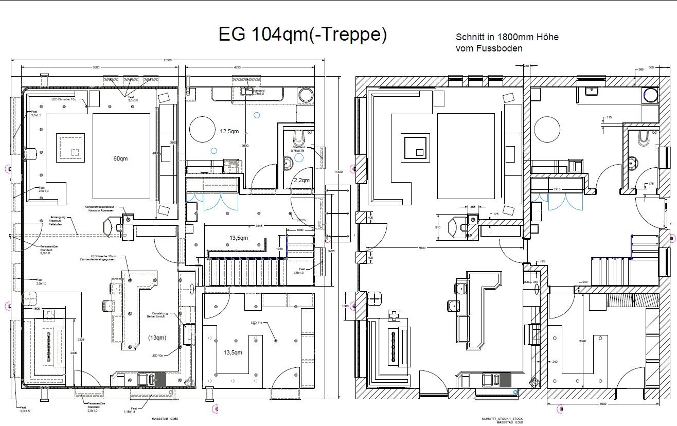 Ein Pelletofen sollte ebenfalls mit in den Wohnraum mit Wasseranschluss.