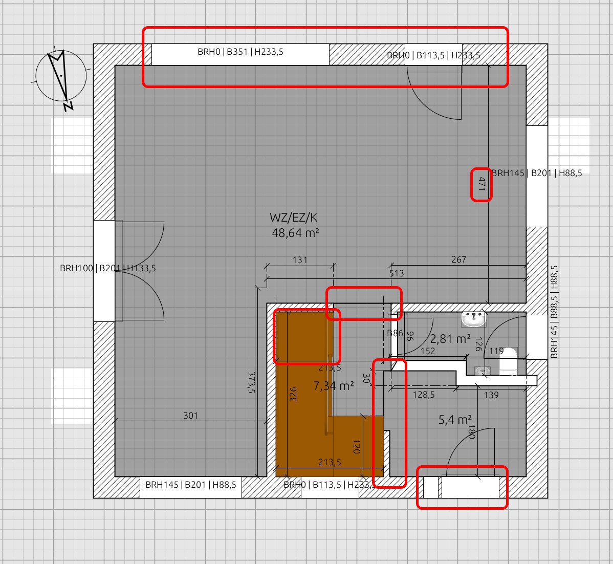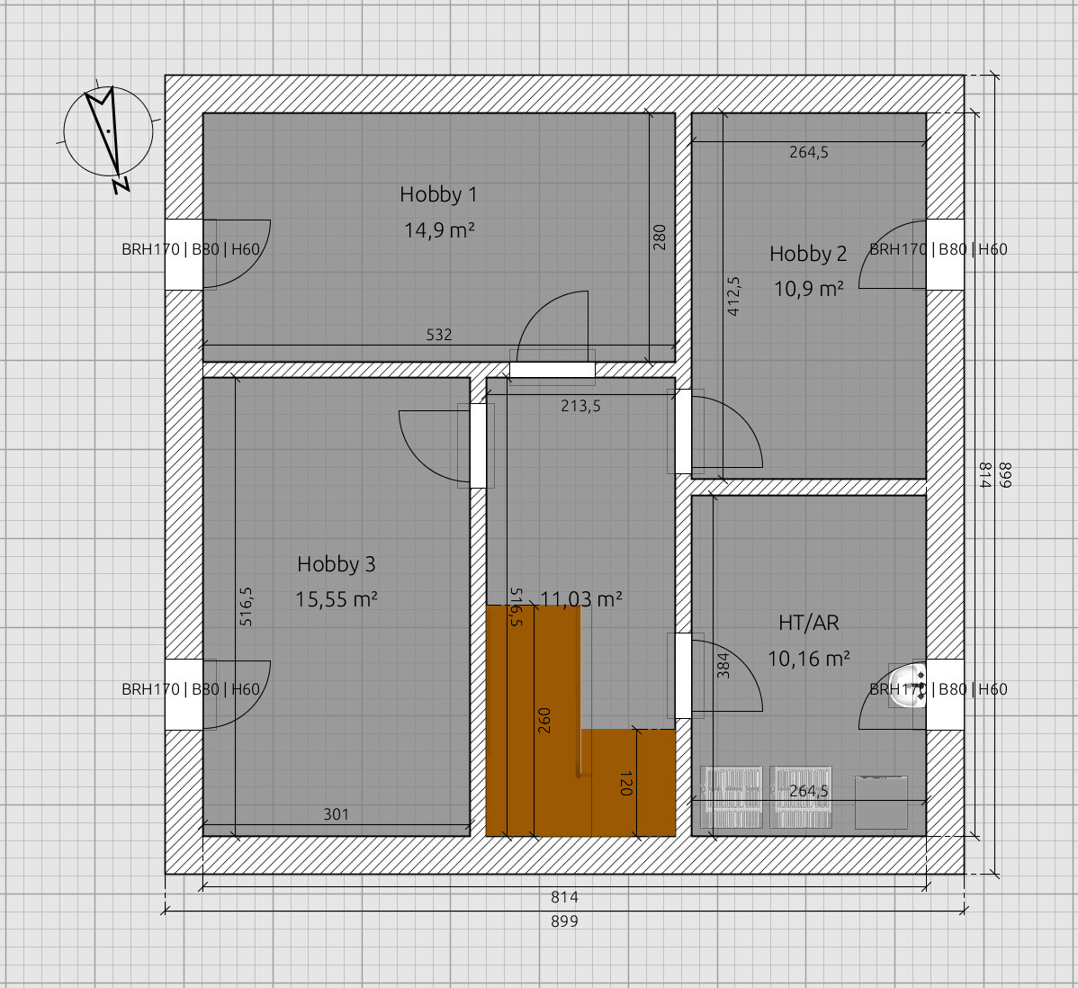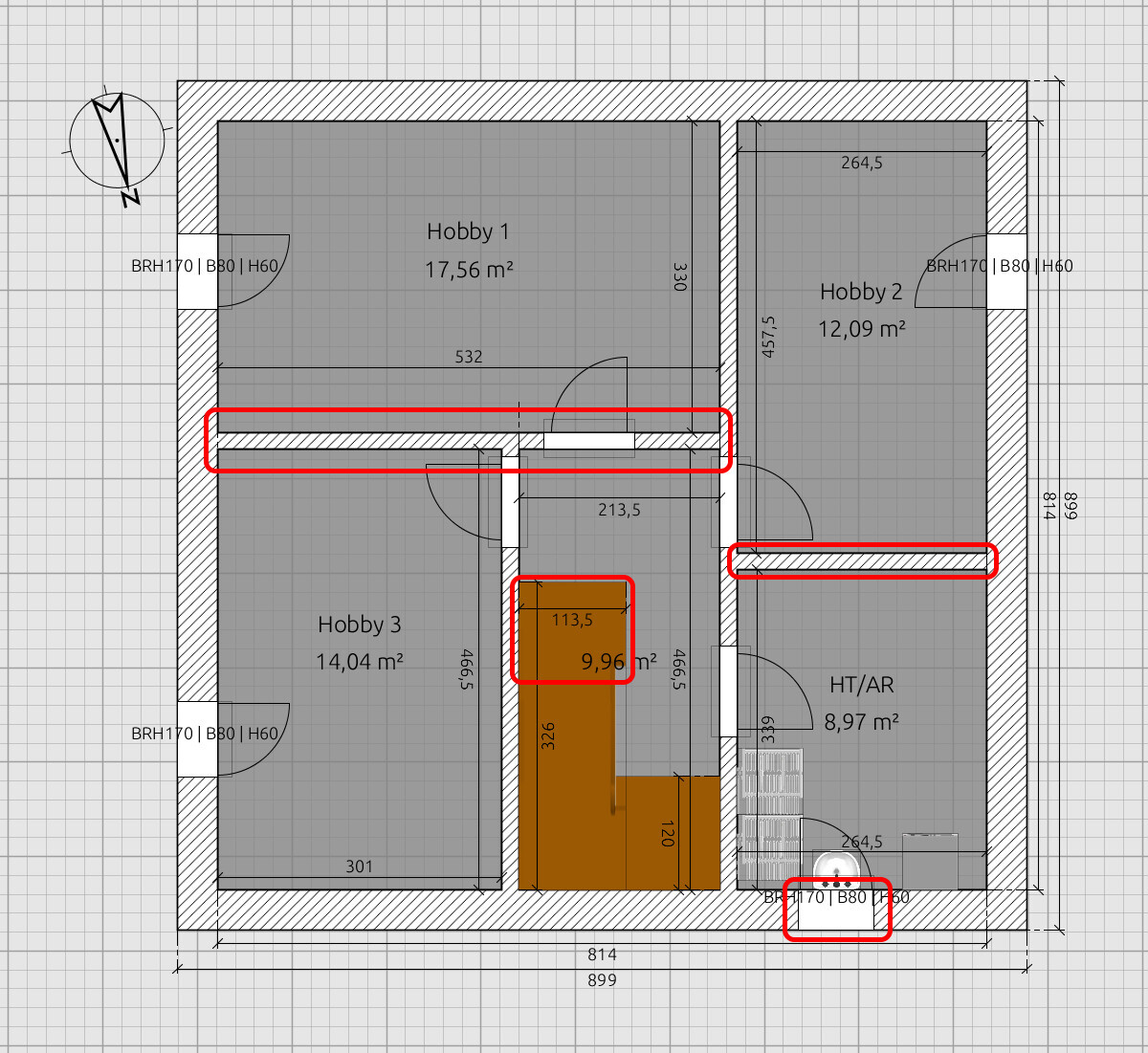 Warum keine Tür zwischen Flur und Allraum? Den Allraum solltest du mal möblieren. Ich finde das ziemlich schwer.