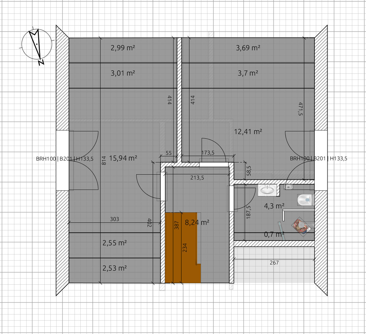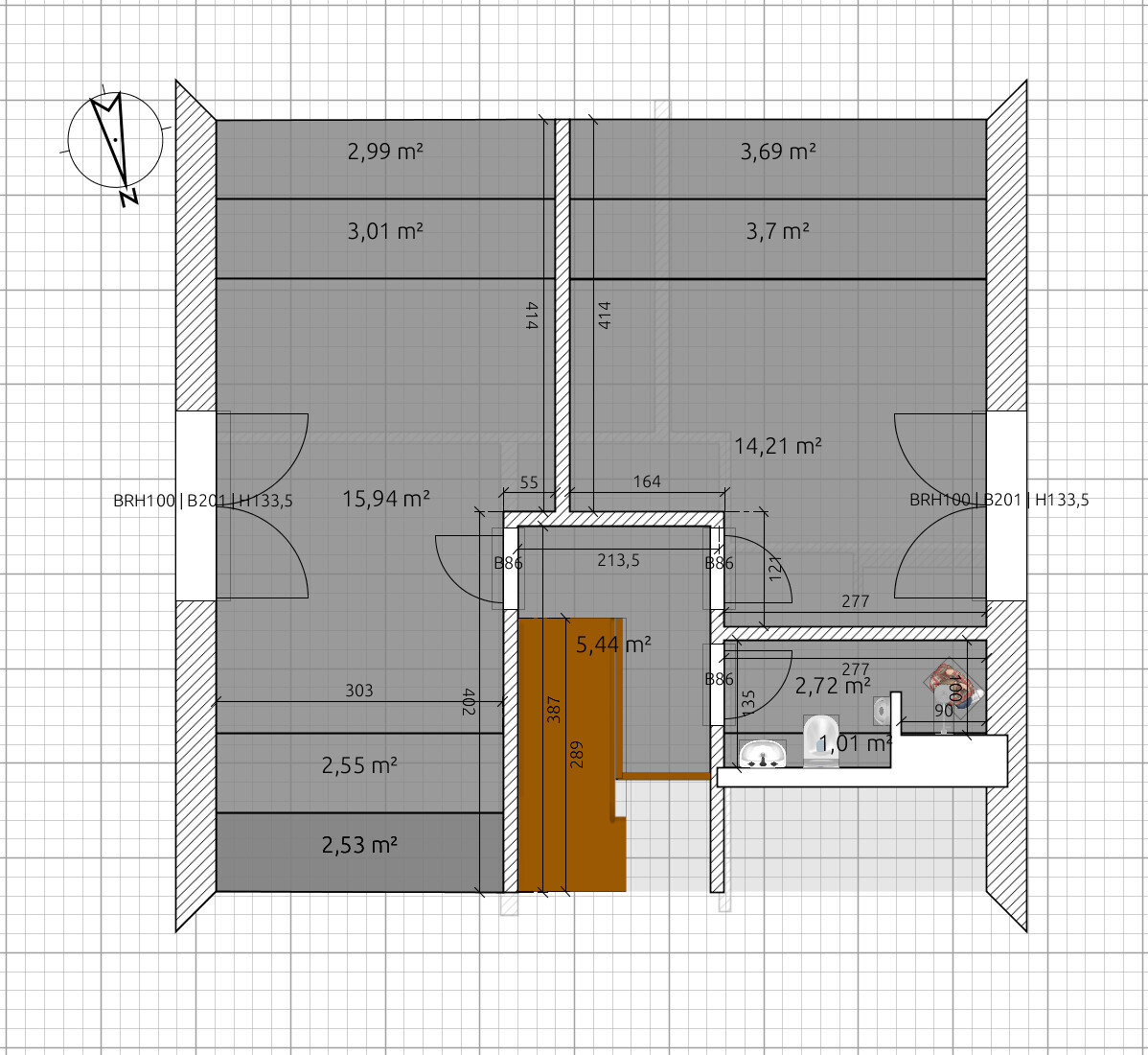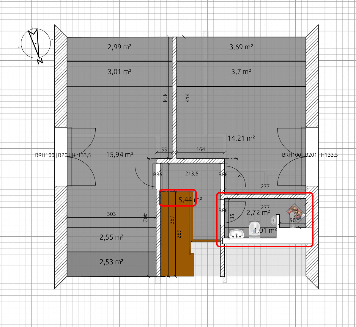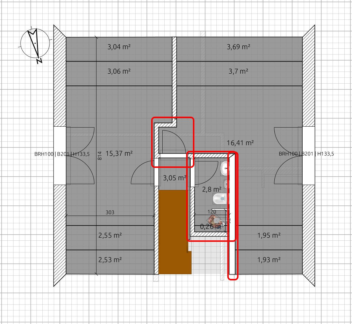 DG .. wo ist die Schräge? Passt die Dusche in die Ecke? Wenn da die 2m-Linie sein soll, dann könnte das sehr eng werden.
