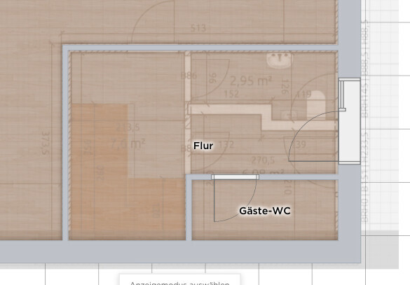 Zum anderen schau mal hier: das ist viel sinnvoller angeordnet, da man sich so kein Nadelöhr ins Haus baut, noch eine Installation, die mittig störend sein könnte.Für uns kam das bisher nicht in Frage, weil wir unbedingt eine Räumlich separierte Garderobe/Windfang wollten. Aktuell entwickelt es sich gerade dahin, dass es zumindest nicht "thermisch getrennt" sein muss (also keine Tür braucht) und ich bin aktuell auch sehr am überlegen ob es überhaupt eine Trennung braucht oder dein Entwurf für uns ok wäre. Das Allerwichtigste war immer, dass wir nicht durch die "Schuhabstellfläche laufen müssen". Un das scheint sich bei dir gewährleisten zu lassen, wenn gleich der schuhschrank steht.Unser Architekt hat heute die überarbeiteten Entwürfe geschickt. Ich habe sie wieder nachgebaut. Bis auf das "etwa 10-30cm zu schmale" Schlafzimmer und den Eingangsbereich (der wie von uns gewünscht nun offen aber halt sehr verwinkelt und klein ist) gefällt es mir gut. Er hatte auch in dem letzten Entwurf das Dach zu niedrig. Wir haben nun sogar noch mal fast 50cm mehr Kopffreiheit und damit die 1 und 2m Linien jeweils 40,7cm nach außen verschoben. Das macht sich an Fläche im Dach sehr bezahlt.