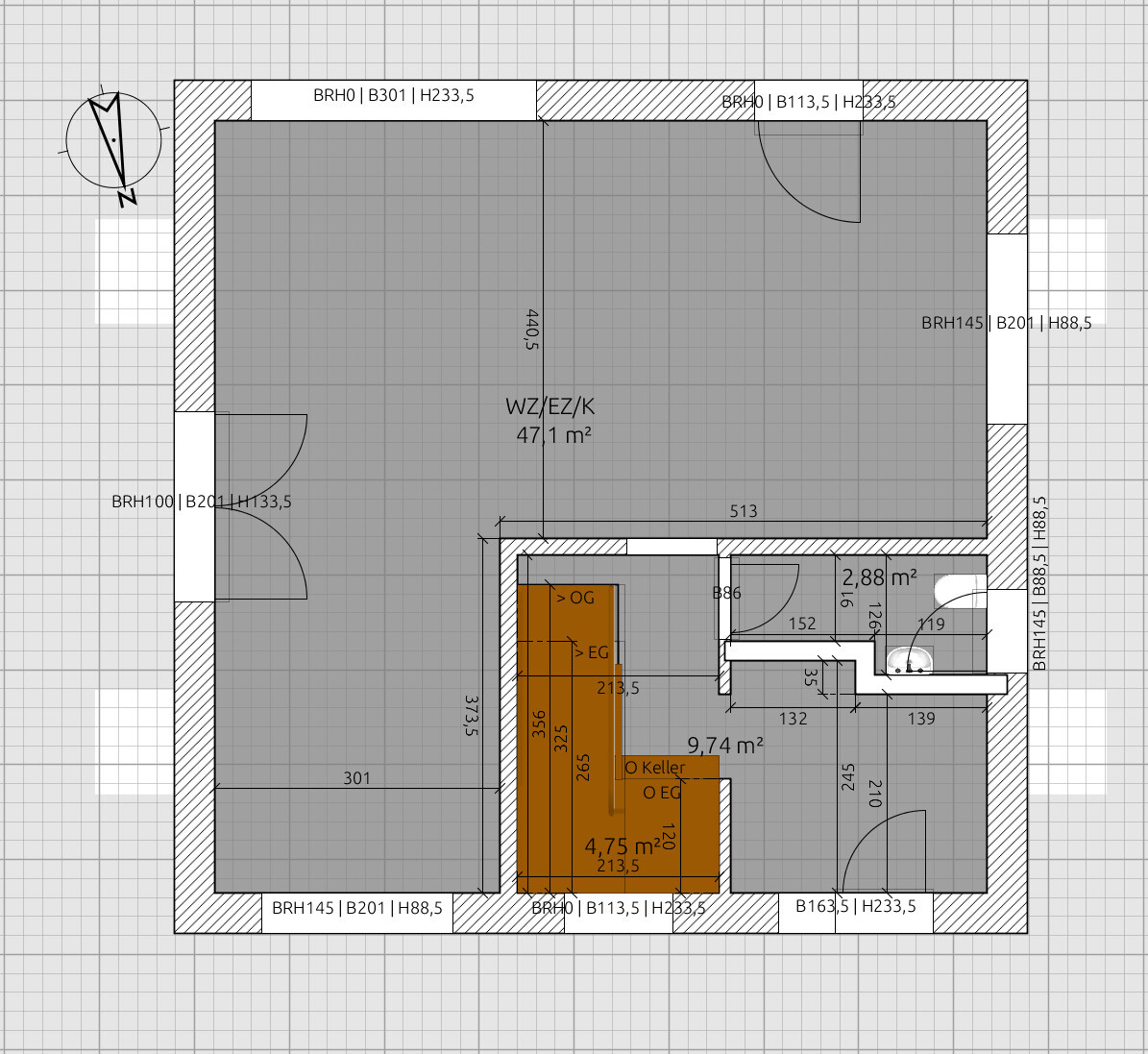 Zum einen funktioniert Deine Fensterplatzierungen nicht, da Du im EG Träger brauchst. Die müssen auf der Außenwand irgendwo aufgelegt werden. Dort hast Du aber überall Fenster...