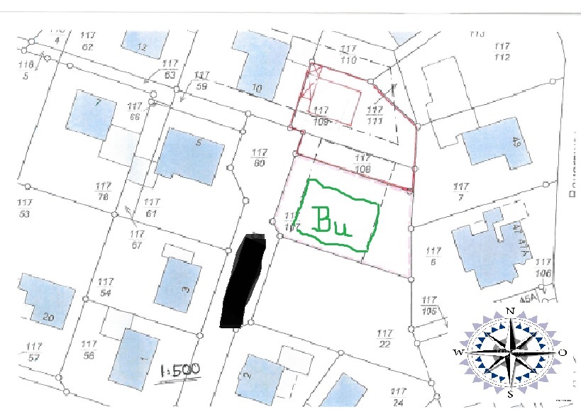 Und hier noch mal der (alte) Lageplan. Bei der Grundstück Lage des Hauses bleibt es, es wird lediglich weiter nach rechts geschoben (Größere Garage/Carport + größeres Haus):