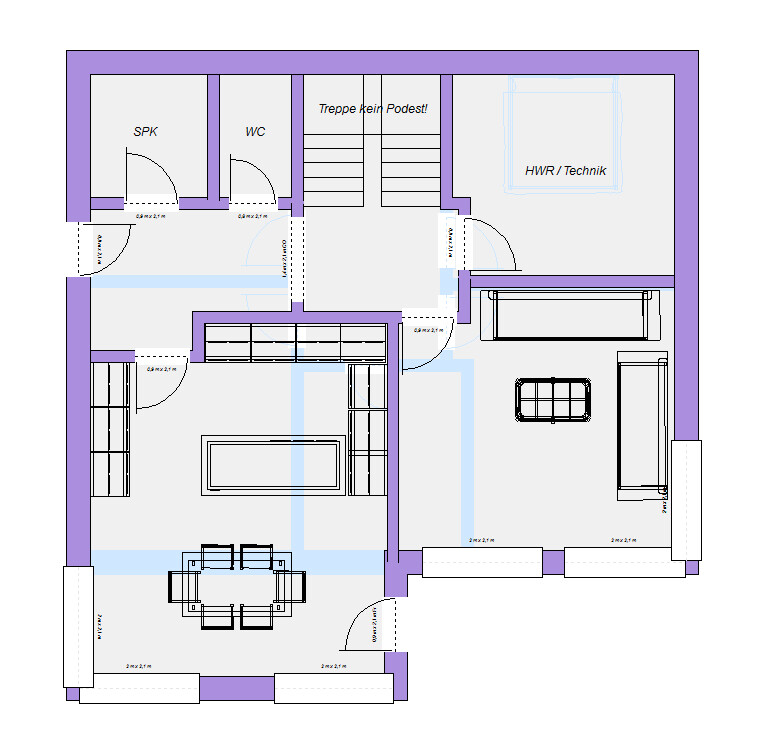 Diese Absurdität erreicht man, wenn die Speis unbedingt von der Südküche aus zu erreichen sein mussSo isses. Rüber zum Hauswirtschaftsraum läge die Speis dann zwar nicht flurlos bei der Küche, aber dafür im Norden.ypg04.09.18 23:19