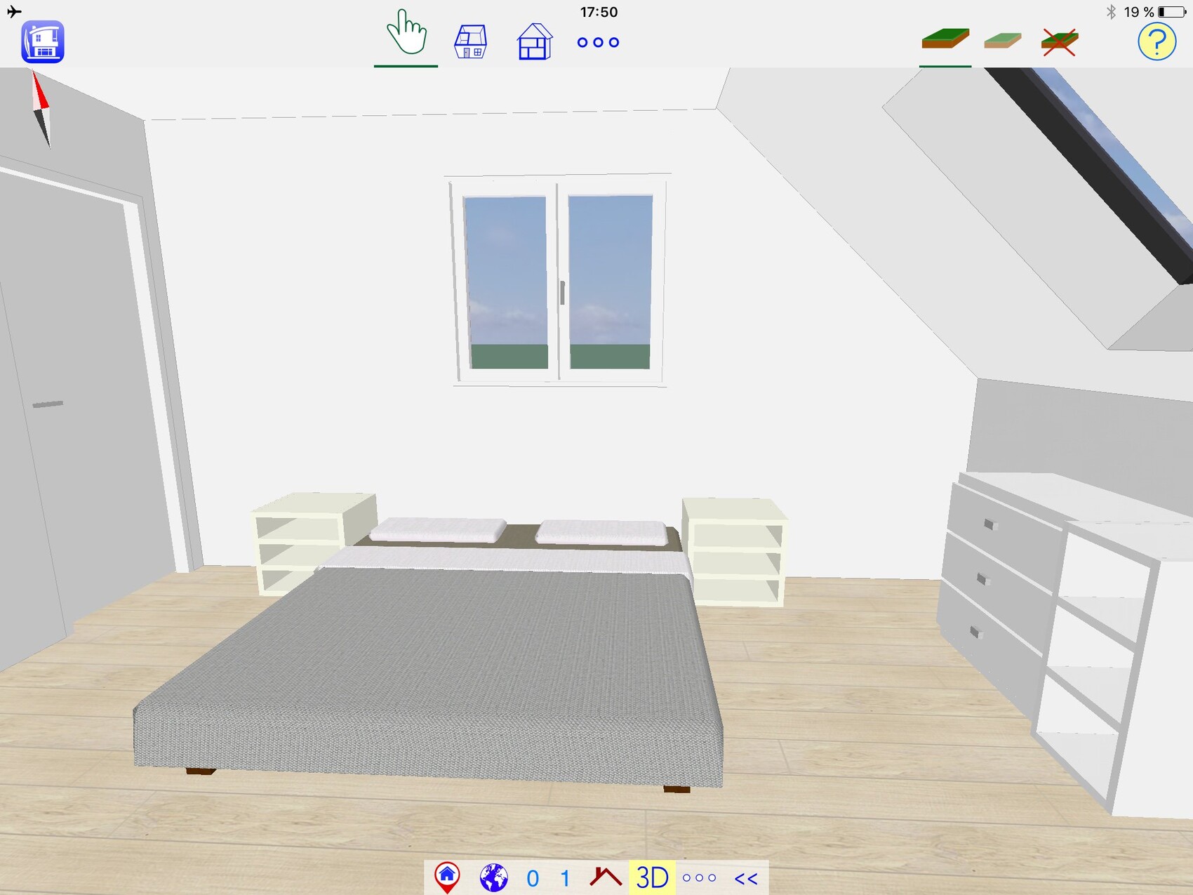 Wo soll denn das Bett stehen? Unterm Fenster? Noch weiter planlinks? Und was soll dann rechts hin?