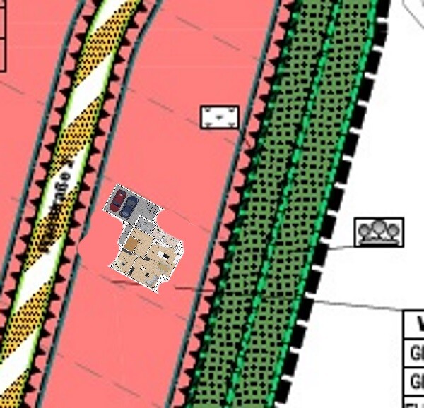 Da ein paar Mal danach gefragt wurde - hier mal der Versuch, die Lage des Hauses auf Grundstück dazustellen (Norden ist oben)... das Grundstück wäre ca. 17m x 40m - davon die östlichen 10m Naturschutzgebiet...