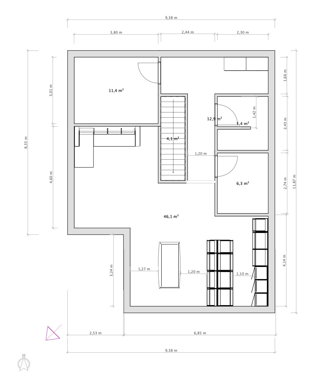 Maßstab ist 1:100. Ich zeichne sowas mit paint.net, weil's so einfach ist, wenn man sich mit der Ebenentechnik vertraut gemacht hat. Ist natürlich nicht zentimetergenau und das Ausrichten geschieht auch nicht exakt. Für 'ne Feinabsteckung reicht's sicher nicht, für die erste Planung aber völlig ausreichend.