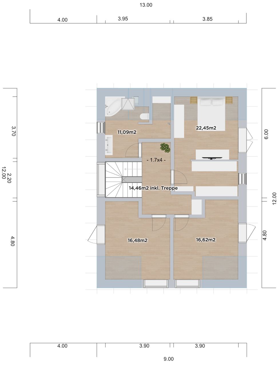 Für Überlegungen ob die Treppe im Norden doch besser wäre oder das Wohnzimmer, und die Küche im Südwesten besser aufgehoben ist, brauchen wir noch etwas Zeit.