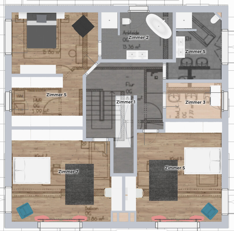 Es geht mir aber primär um die RaumaufteilungSorry, aber die Raumaufteilung ist definitiv von der Lage der Treppe abhängig. Antritt und Austritt bestimmen weitere Maße, zb Flur und nächste Räume. Schließlich machen schon mal 20cm den Unterschied, ob etwas nicht funktioniert oder doch.