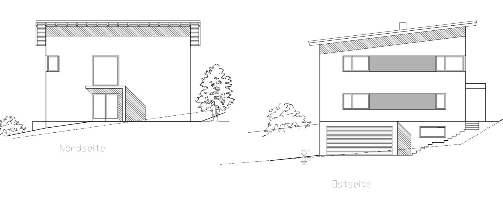 - 2 Meter Linie: Gibt ein Pultdach -> Höheneinstellung gibt der Architekt an. Jedoch wird nichts unter 2 m sein.