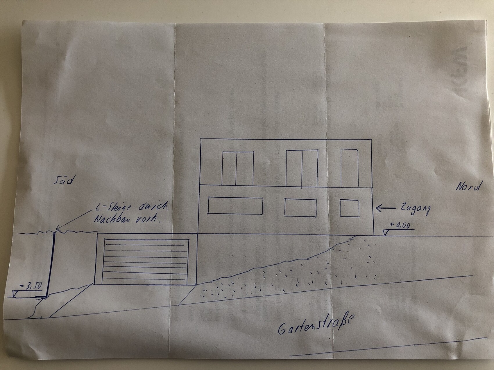 Zum Geländeprofil: die Zeichnung finde ich so nur mäßig hilfreich, eine Eintragung von Höhenpunkten im Luftbild würde mir mehr sagen.