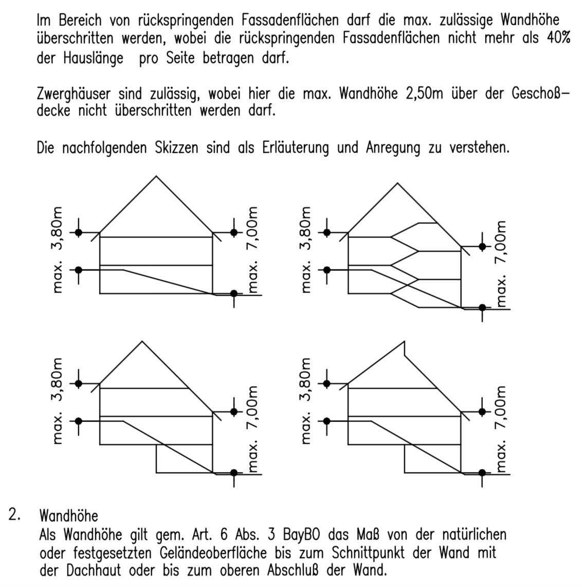 Explizit geht es mir um die Max. zugelassenen Höhen. Hier steht beschrieben, dass im Bereich von rückspringenden Fassadenflächen die Max. zulässige Wandhöhe überschritten werden darf.