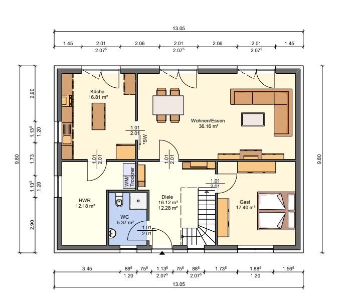 vergiss bloß nicht auf den Wäscheschacht vom Bad OG in den Hauswirtschaftsraum!