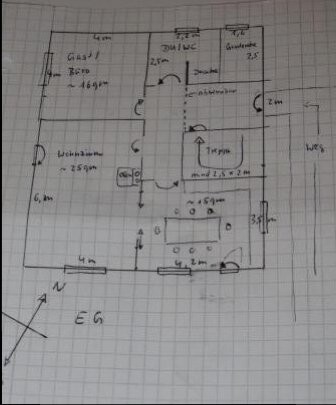 Wohnzimmer getrennt von Küche / Essbereich (im Moment Wohnküche, aber kleine Küche + Esszimmer wäre auch ok)