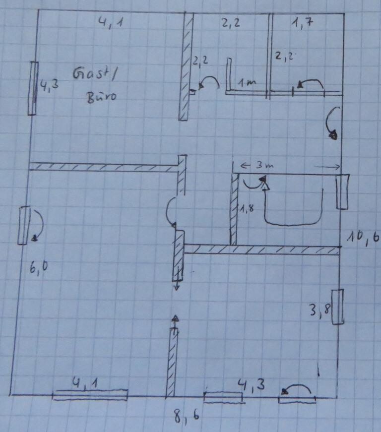 Ich werde mal die Möbel einzeichnen, mal sehen, ob ich auf neue Gedanken komme ....