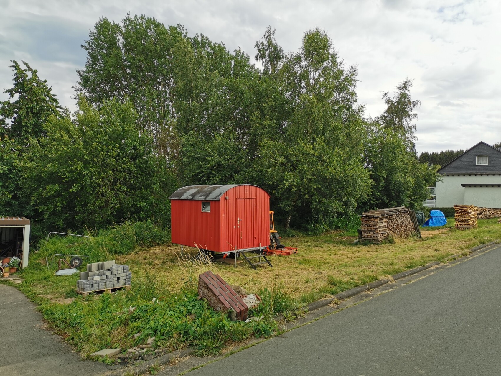 Hang Grundstück fällt von Straße 1,2m zur Mitte hin ab über die ganze länge. Hinter dem Bach Richtung Feld Hang von ca 2,5m