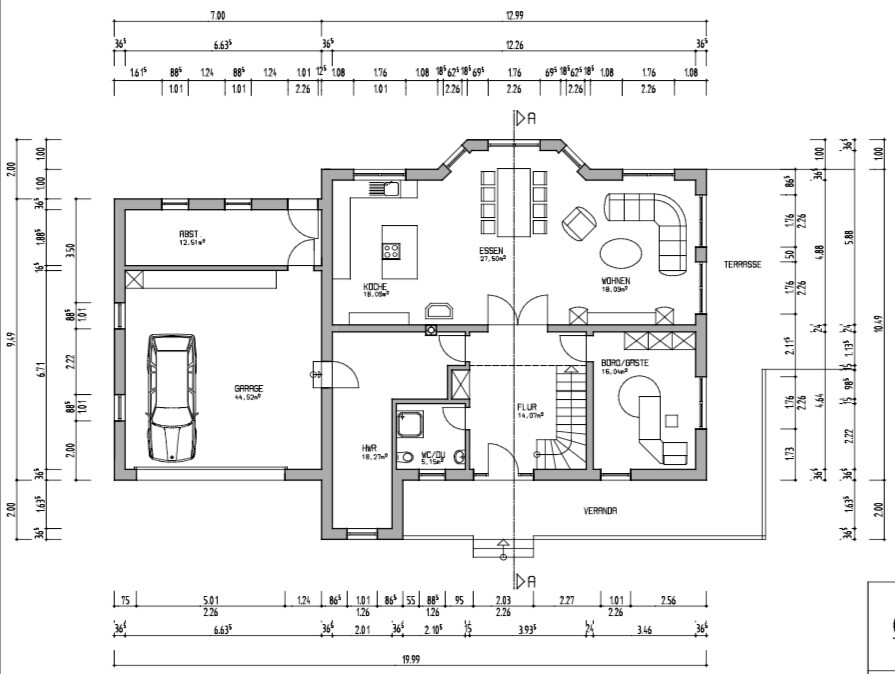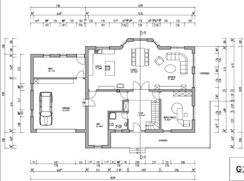 aktuell Hauswirtschaftsraum,Gästebadbereich ist nicht gut integriert, Garderobe zu klein (vllt, weglassen, Ausrichtung Terrasse, Frontseite wegen Verandadach zu nah an Hausdach (Überlegung Gaube in der Frontseite)