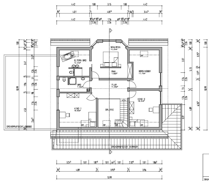 kein Keller, Geschosse 1 1/2 bis 2 Kniestock 1,4m