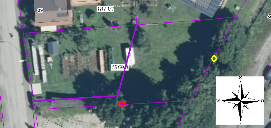 4. Zur Erschließung: Den Punkt mit Wasser haben wir rot markiert – am gelben Punkt ist das Abwasser (siehe Anhang)