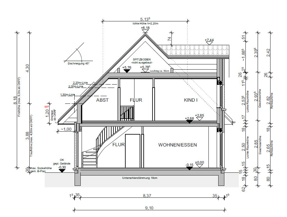 Die Möbel in Kind I und Kind II stehen in der Zeichnung nicht optimal, darüber brauchen wir nicht zu sprechen, denke, das kriegt man besser hin.
