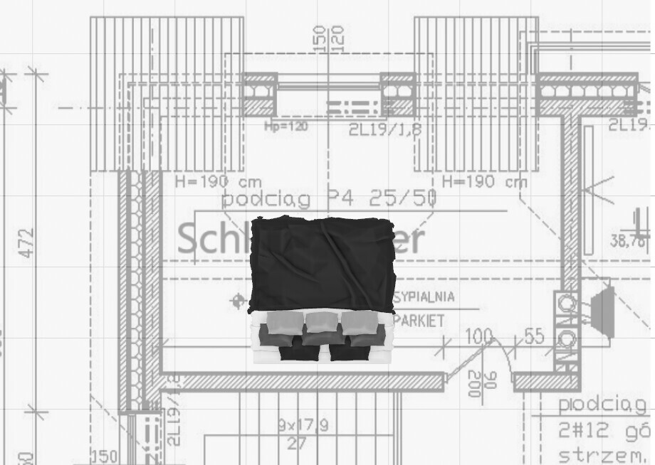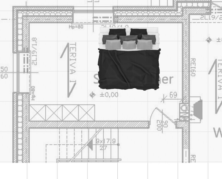 Wieso ist da kein Platz für ein Ehebett, kannst du mich erleuchten?Jepp:Einmal hier im EG: normales Doppelbettmaß, Bett muss schon ein Stück unterm Fenster stehen, der Durchgang mit einem Schrank ist zu eng.