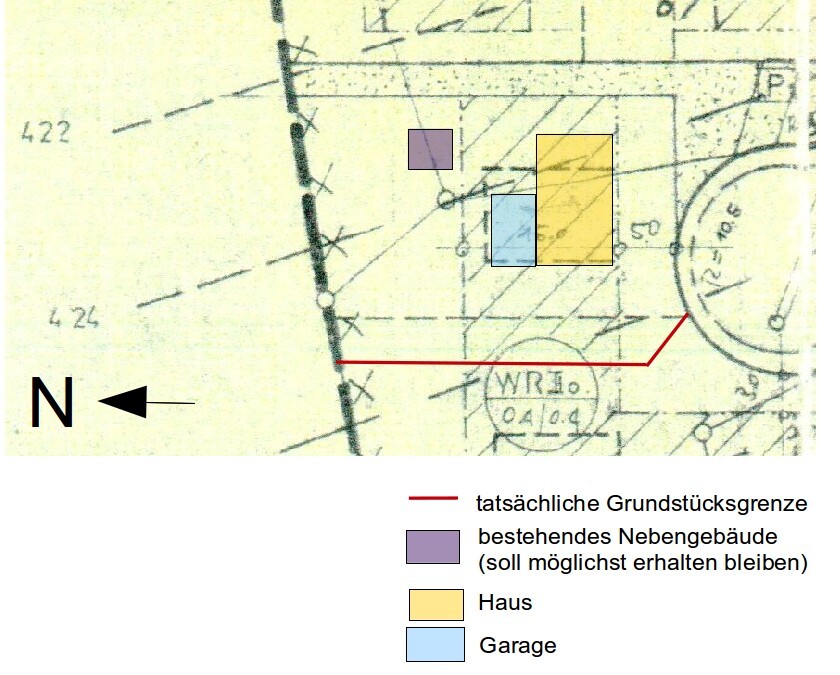 Ich habe etwas Verständnisprobleme mit Deinem Entwurf. Du schreibst, dass Du eine Terrasse im Westen bauen willst und zeichnest eine Terrasse auf der Garage im Norden ein? Verstehe ich nicht - wozu soll die gut sein?