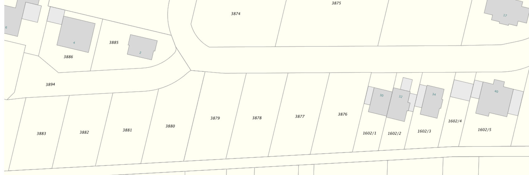 Lageplan mit Parzellen-Nummern und Gebäuden auf einem Grundstücksplan