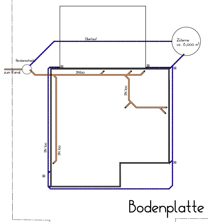 1. Die Zeichnung der Bodenplatte ist vorhanden und der Architekt hat diese als Vorlage für das Haus verwendet.