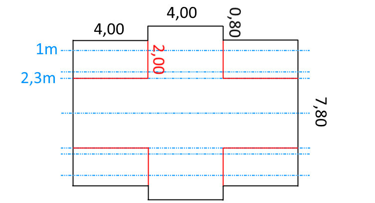 Grundfläche EG: 7,80m * 12,00m + 2 * 4,00m * 0,80m = 100m²