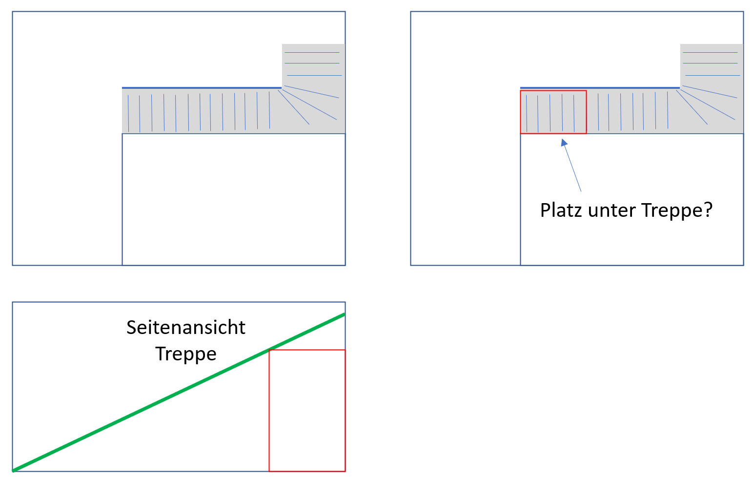 Und eine Dusche unter der Treppe ist dann auch ein Tippfehler? Na, dann bin ich ja beruhigt Nein, das war kein Tippfehler, sondern eine Idee, die ich hier evaluieren wollte.