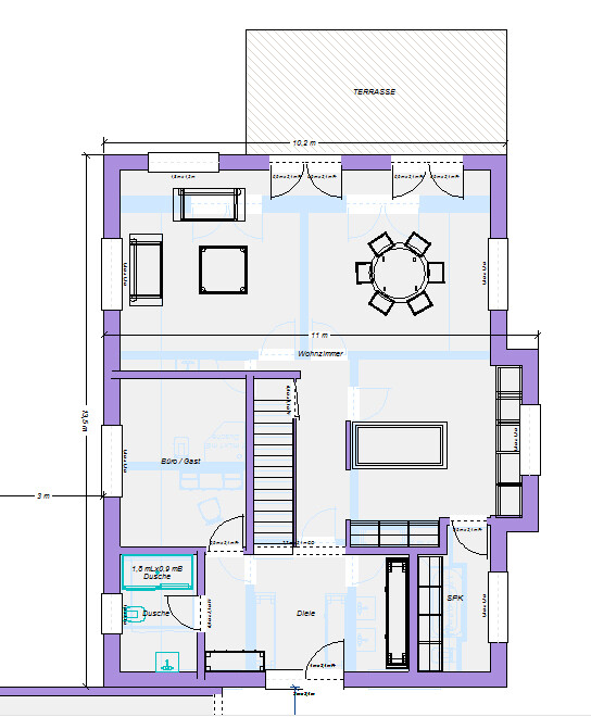 vielen Dank für den Entwurf! Gefällt mir grundsätzlich sehr gut. Etwas unpraktisch finde ich, dass der Besuch immer durch die Küche muss um ins Esszimmer und ins Wohnzimmer zu gelangen. Ein Grund für eine geschlossene Küche ist, dass die da dann auch mal ein Topf oder Geschirr herumstehen kann, wenn Besuch kommt. Das ginge dann nicht mehr