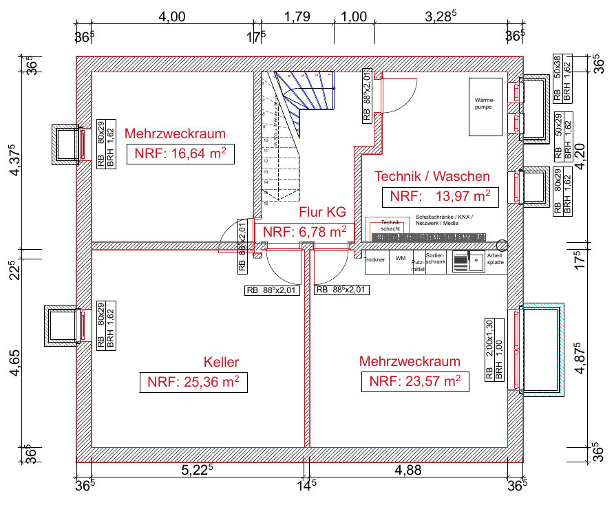 - Das Haus soll eine KNX Installation bekommen, deshalb soll ein Elektro-Technikschacht vorgesehen werden