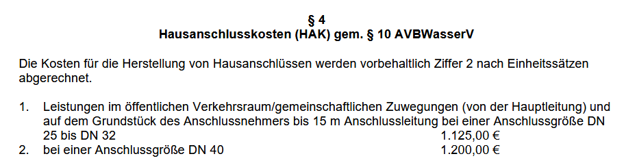 Hausanschlüsse für Wasser und Strom betragen zusammen 1500€.