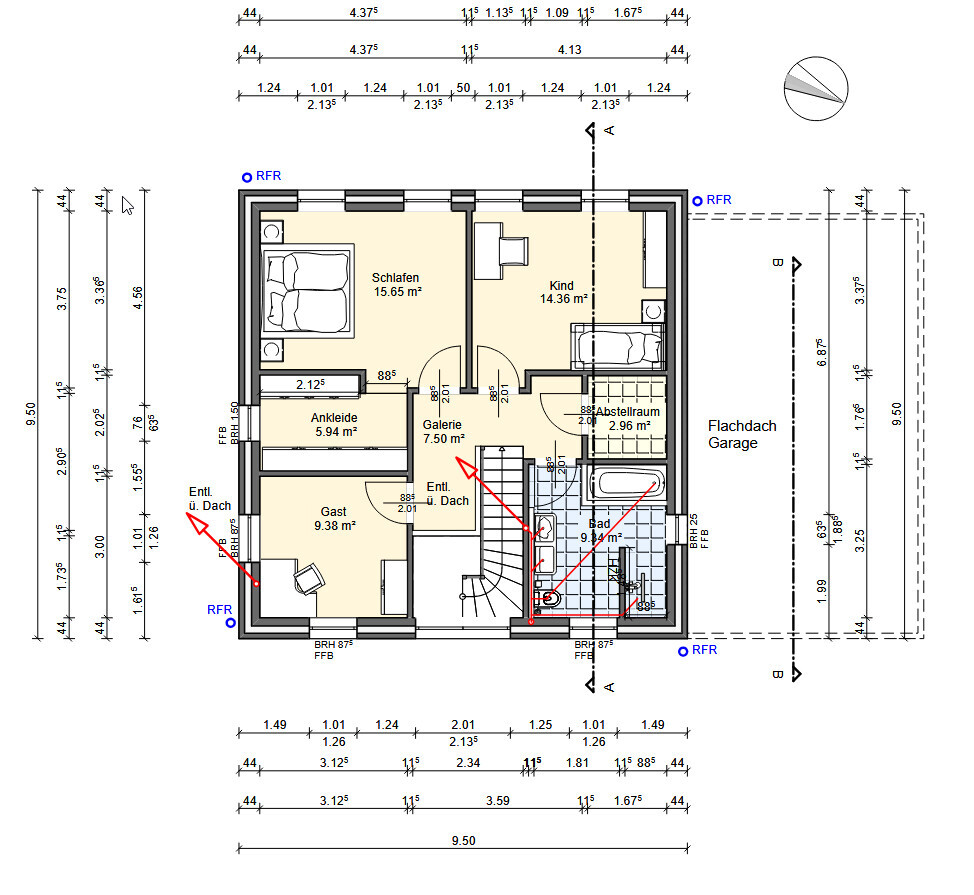 3. Ich habe vorerst nur mal eine Diskussionsgrundlade als Vorlage aus dem Internet gesucht. Das dort geplante Haus passte von den Proportionen auch gar nicht, da es ursprünglich auf 7,5m geplant war. Ich aber 10x8,5m bauen wollen würde.