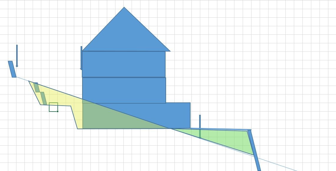 Du hast doch eine riesige bestands Stützwand und dann das Haus auf einer Ebene. Oder?