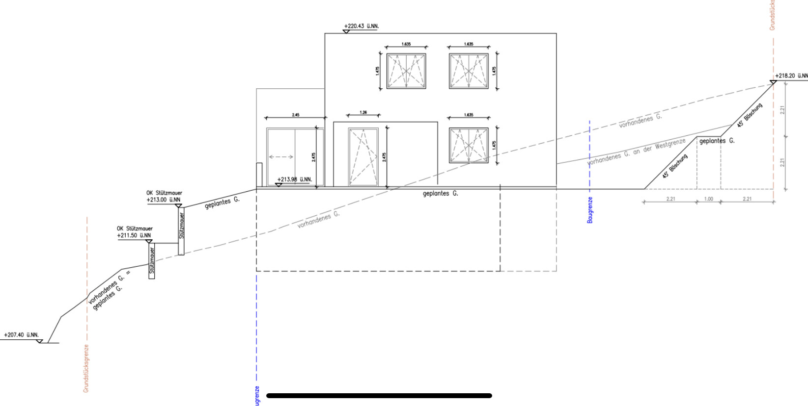 Fakt ist, dass zB die Stützmauer des Gartens weiter hinten ist als geplant, sonst hätte ich eine 3. Reihe gebraucht. Das wiederum hat zur Folge, dass die Außentreppe v Straße zu Garten nimmer so umsetzbar ist, wie gedacht etc.